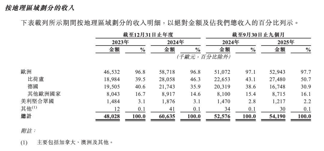 不过,这种结构也意味着收入高度依赖欧洲市场。2025年前九个月,公司97.7%的收入来自欧洲,美国市场贡献约2.2%。
