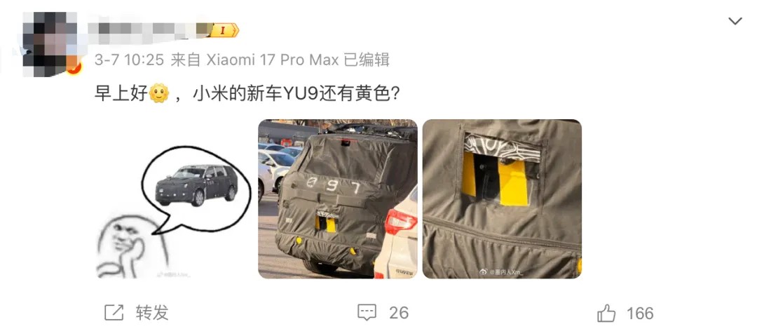 小米YU9尚未曝光的配置,可参考YU7,高阶辅助驾驶、激光雷达、高性能车机、零重力座椅、超级小爱、智能底盘等,YU9都会配备,体验相较YU7只高不低。相应地,小米YU9的价格也会在YU7之上。