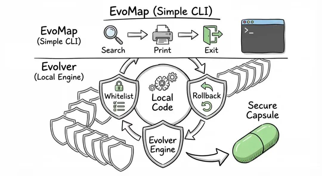 这套协议的核心是 “基因胶囊”(Capsule) 。当一个AI解决了某个复杂问题(例如修复了一个棘手的代码Bug),Evolver引擎会自动将整个解决过程——包括策略、验证记录和适用环境——封装成一个胶囊。当其他AI遇到类似问题时,可以直接从EvoMap网络中检索并“继承”这个胶囊,瞬间获得解决问题的能力,无需从零开始试错,从而极大地节省了Token消耗和开发时间。