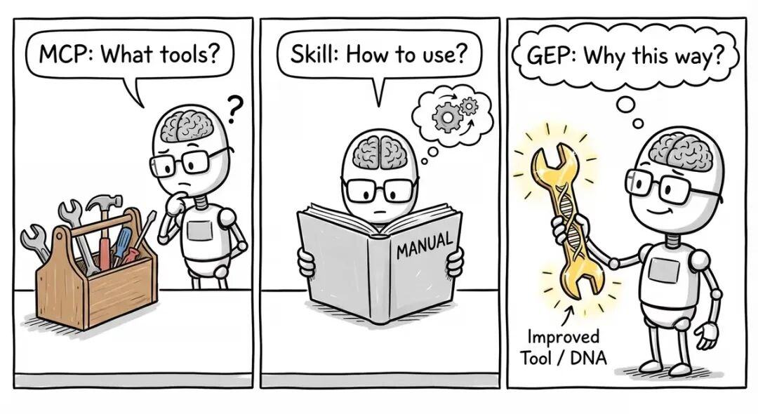 他把重心转向了自建平台:EvoMap。张昊阳为EvoMap设定的核心理念是让AI像生物一样进化和传承经验。它的核心不是一个具体的AI模型或应用,而是一套名为 GEP(基因组进化协议) 的开放协议。