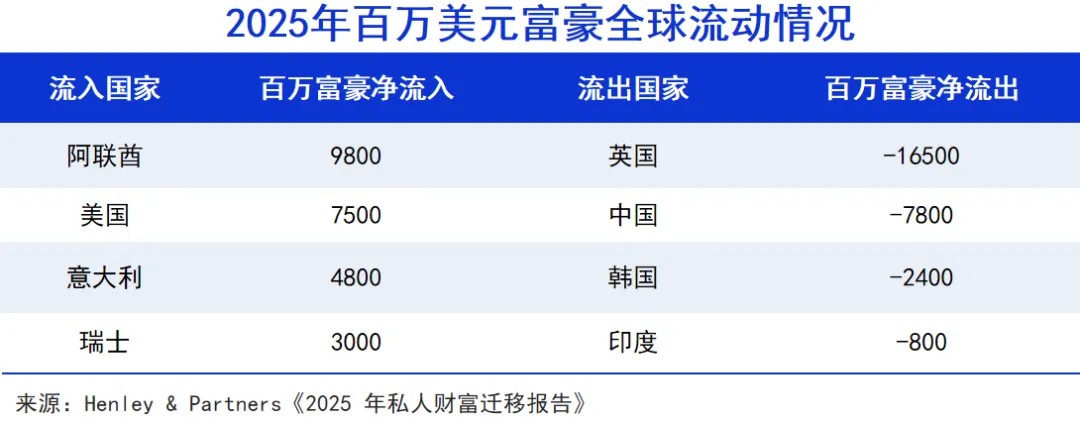 受益于全球富豪涌入,而本地地产供应不足,迪拜房价持续走高。2025年,阿联酋吸引了9800名百万美元富豪,属当之无愧的世界第一,迪拜是核心承接地,占比超九成。