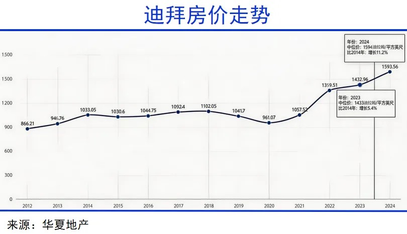 自2020年疫情之后,迪拜房地产量价齐升。2025年,迪拜住宅均价约1660迪拉姆/平方英尺(约3.12万元/㎡),同比上涨12%,且全年交易量创纪录达到27万笔,总价值9170亿迪拉姆,其中65%为off-plan(期房),显示海外投资者对迪拜的信心。