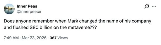然而网友们对此嗤之以鼻,直言:“还有人记得马克改掉公司名字、在元宇宙上烧掉800亿美元的事吗?”