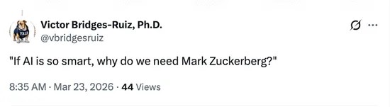 还有人一针见血地指出:“如果AI真的那么聪明,那么我们为什么还需要马克·扎克伯格?”