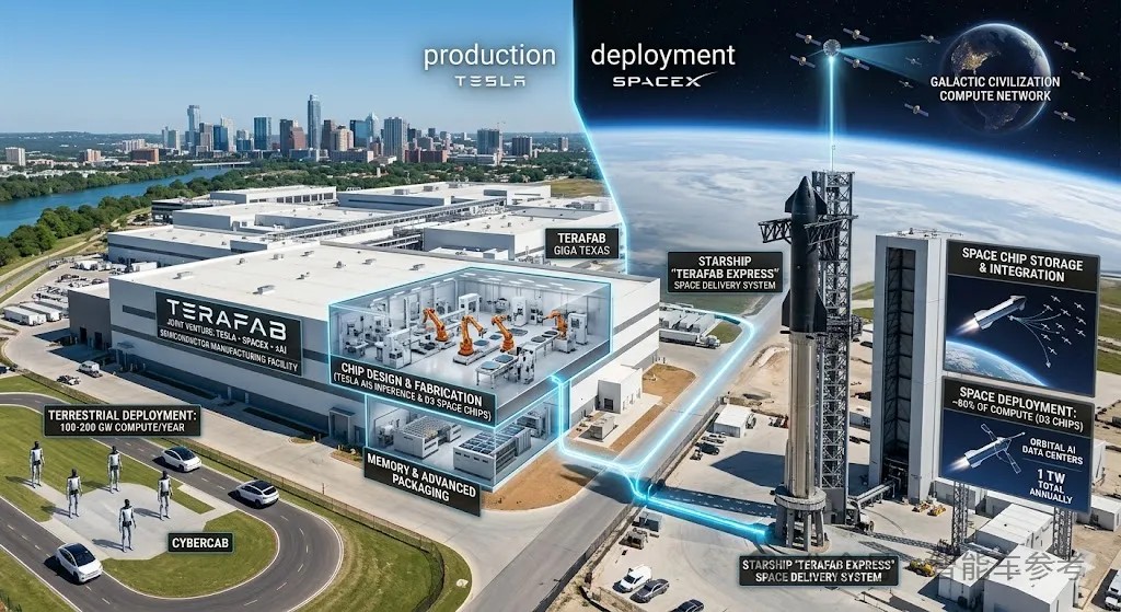 马斯克评价Terafab计划堪称「人类史诗级项目」,难度非常高,所以需要他旗下的特斯拉、SpaceX和xAI合作完成,合作范围横跨地球和月球。